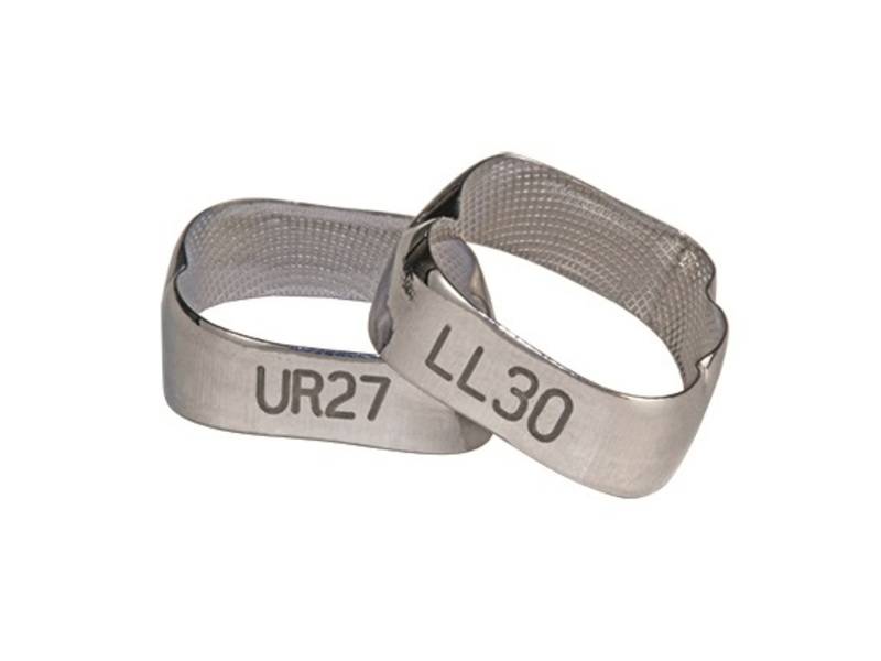 MR1 1st Molar Band; 中等輪廓,中等高的齒面覆蓋率,適用於多種牙冠形狀。中等硬度、強度的材質,非常適合用於焊接、較高力量的矯正器; 型號 1 - 32;