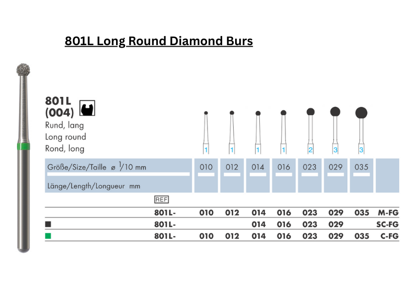 801L Long Round Diamond Burs