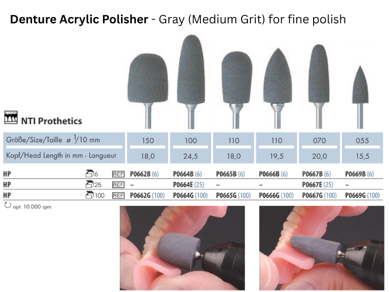 Denture Acrylic Polisher - Gray (Medium Grit) for fine polish