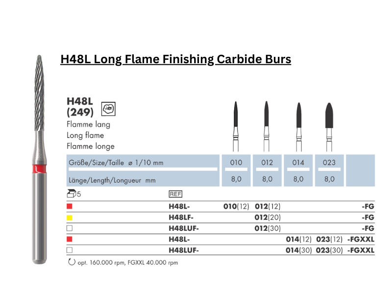 H48L Long Flame Finishing Carbide Burs