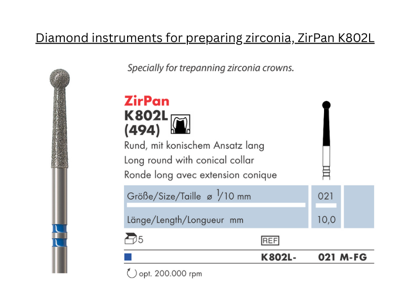 Diamond instruments for preparing zirconia, ZirPan K802L
