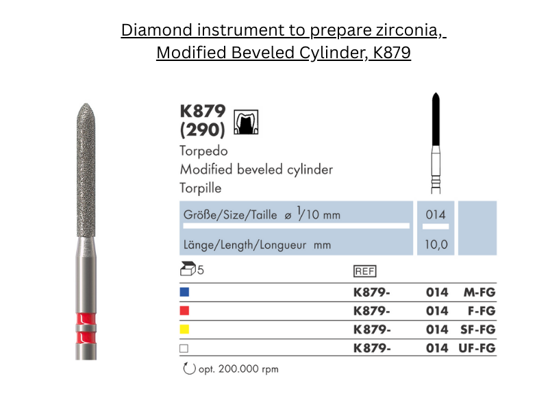 Diamond instrument to prepare zirconia, Modified Beveled Cylinder, K879
