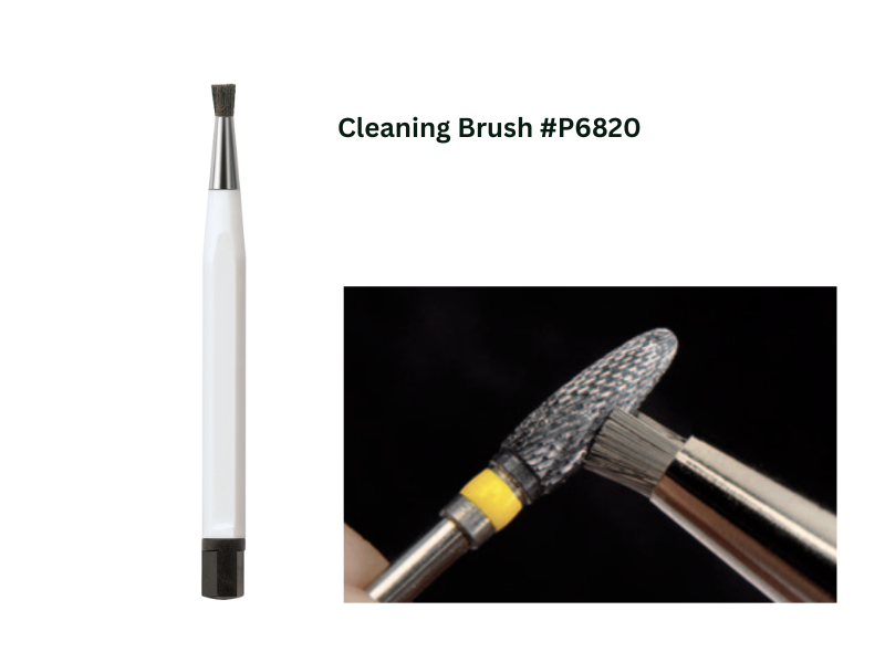 Cleaning brush is designed for removing insistent contaminations on steel and tungsten carbide burs and cutters.