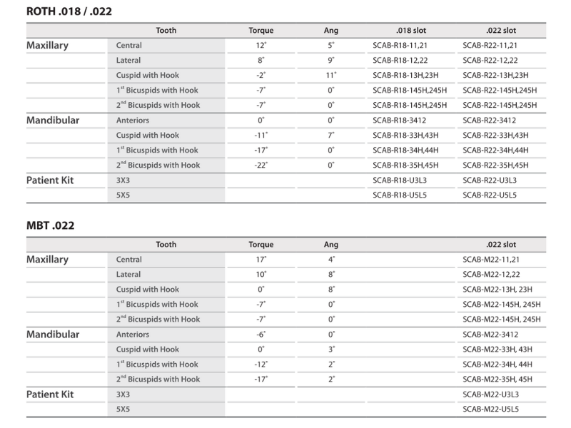 處方 : MBT 022, Active, Cuspid & Bicuspids Hooks